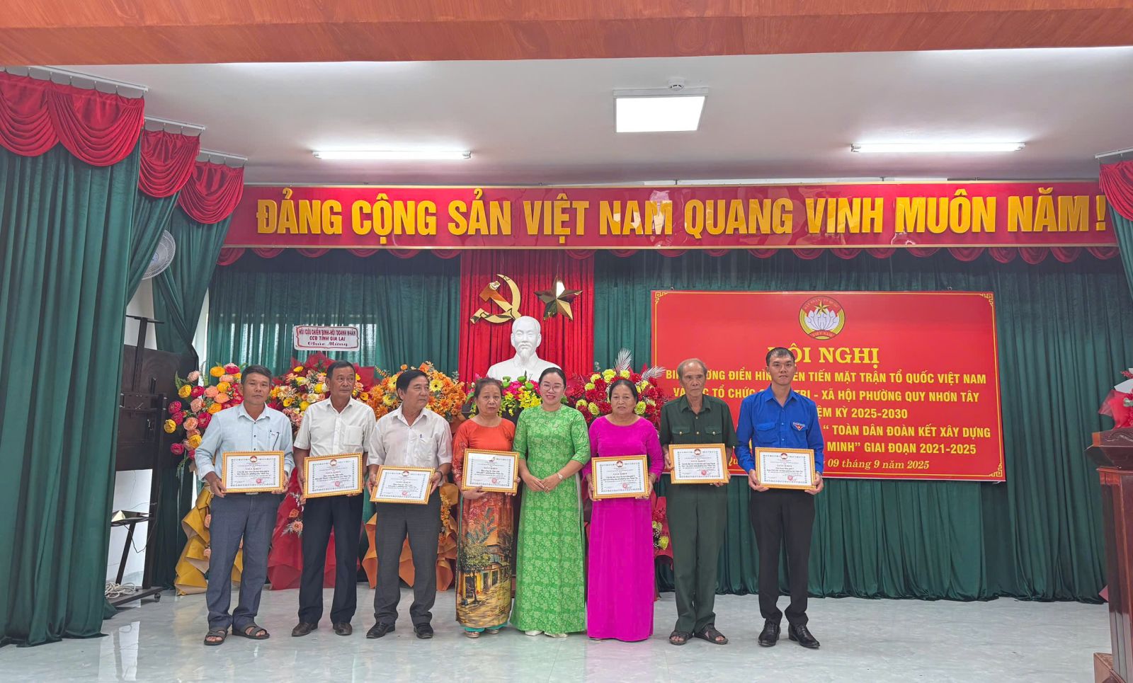 Hội nghị biểu dương điển hình tiên tiến lần thứ I, giai đoạn 2025 - 2030 và Sơ kết 5 năm Cuộc vận động “Toàn dân đoàn kết xây dựng nông thôn mới, đô thị văn minh” giai đoạn 2021-2025 đã khép lại trong không khí trang trọng, phấn khởi, tạo động lực mạnh mẽ để cán bộ, đảng viên, hội đoàn viên và nhân dân phường tiếp tục nỗ lực, thi đua, góp phần xây dựng phường Quy Nhơn Tây ngày càng văn minh, giàu đẹp.