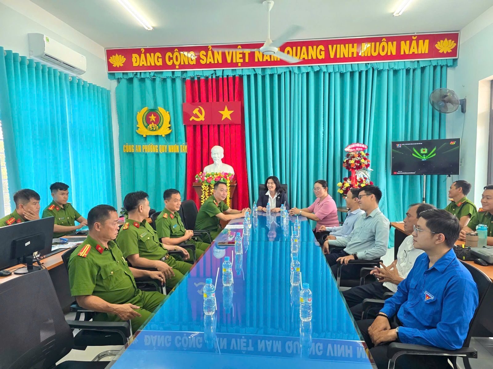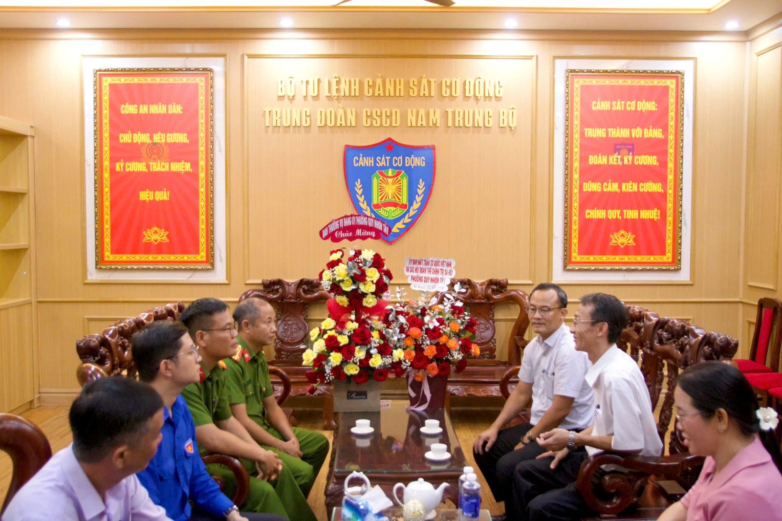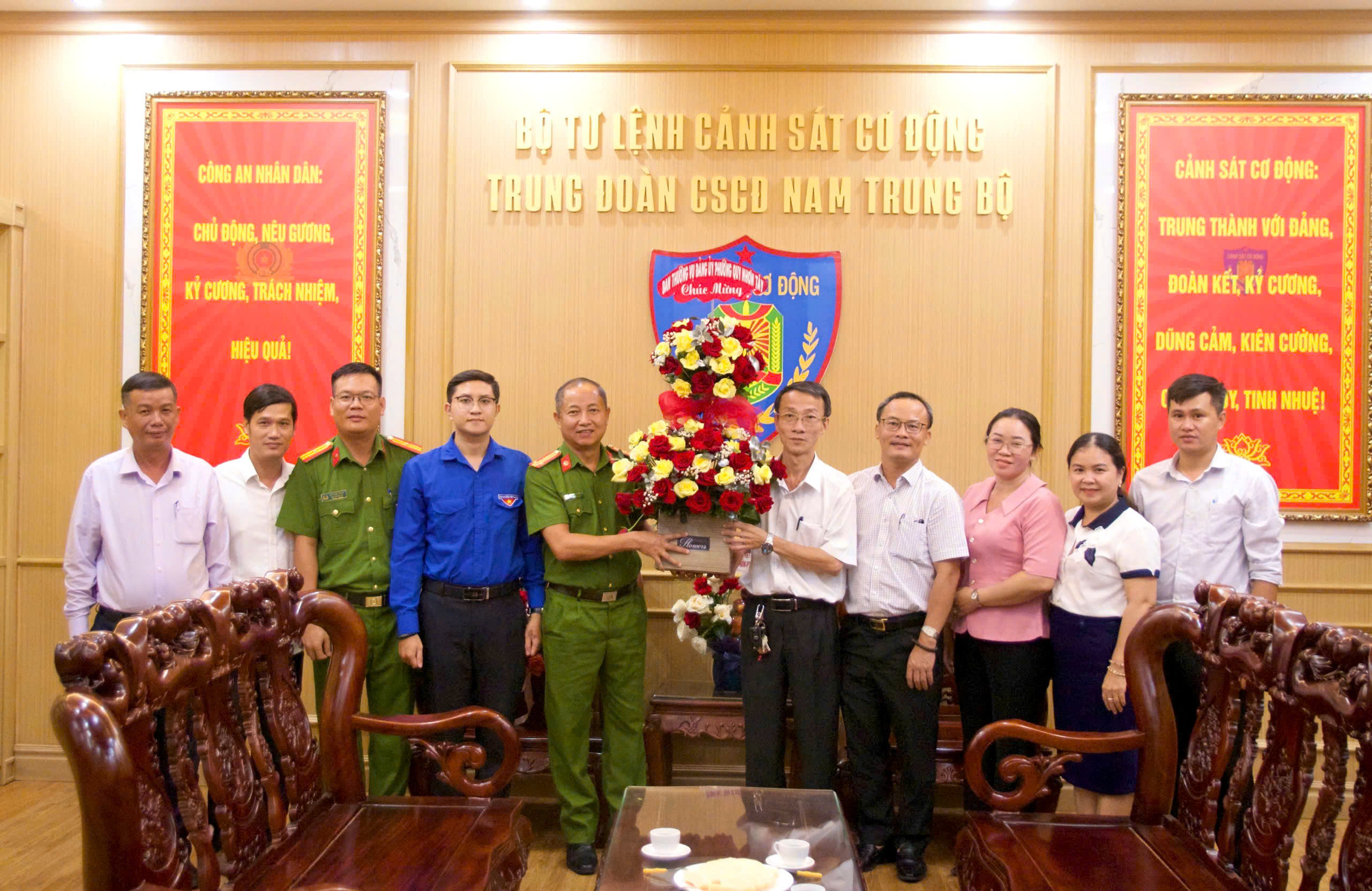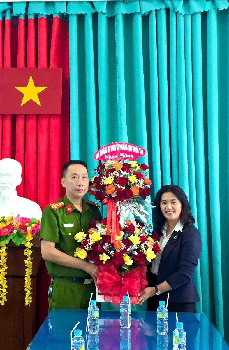 Nhân kỷ niệm 80 năm Ngày truyền thống Công an nhân dân Việt Nam (19/8/1945 – 19/8/2025), đồng chí Nguyễn Đặng Thị Thu Hoà – Bí thư Đảng ủy, Chủ tịch HĐND phường; đồng chí Trần Văn Đúng – Phó Bí thư Thường trực Đảng ủy; đồng chí Nguyễn Quang Minh – Chủ tịch UBND phường Quy Nhơn Tây cùng đại diện các ban, ngành, hội đoàn thể phường đã đến thăm, tặng hoa và chúc mừng tập thể Công an phường Quy Nhơn Tây và Trung đoàn Cảnh sát cơ động Nam Trung Bộ.