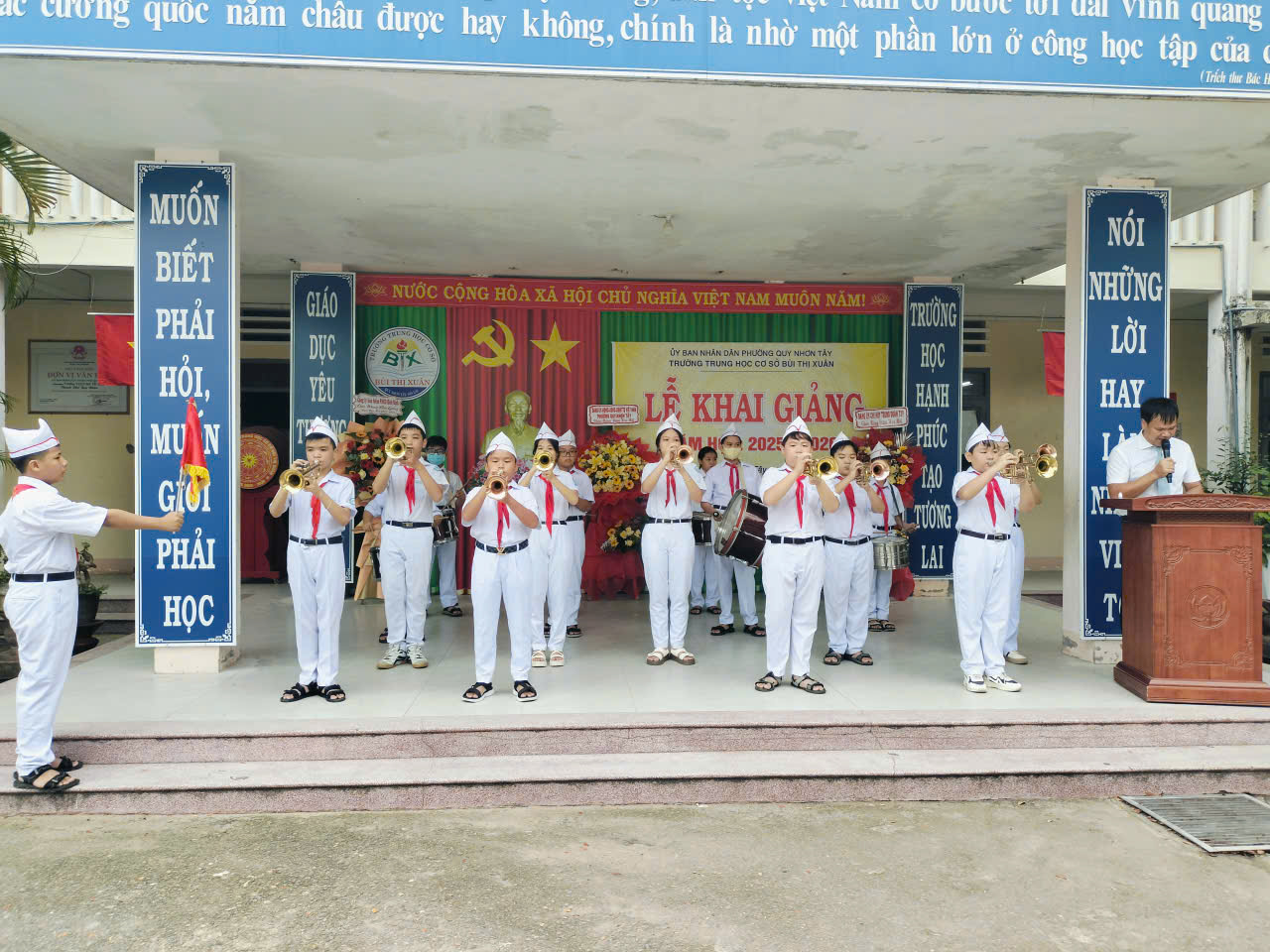 Năm học 2025 – 2026 mang chủ đề “Kỷ cương – sáng tạo – đột phá – phát triển”, thể hiện quyết tâm đổi mới, nâng cao chất lượng giáo dục. Đây không chỉ là cam kết của ngành giáo dục phường Quy Nhơn Tây, mà còn là khát vọng chung của cả cộng đồng: vun đắp tri thức, bồi dưỡng nhân cách và trang bị kỹ năng cho thế hệ trẻ. Ngày khai giảng hôm nay không chỉ mở ra một năm học mới, mà còn tiếp thêm niềm tin, ý chí và động lực để thầy và trò cùng nhau phấn đấu, gặt hái nhiều thành công, đóng góp thiết thực cho sự nghiệp giáo dục và sự phát triển bền vững của quê hương, đất nước.